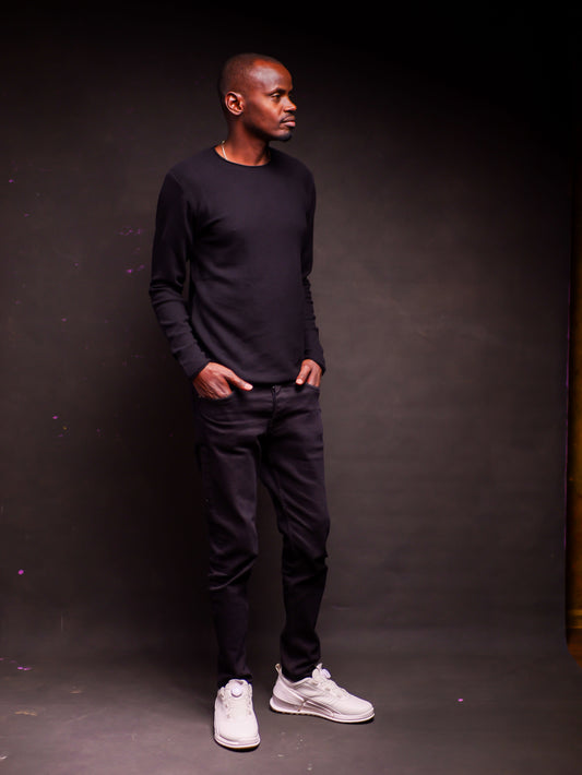 Knitted Long Sleeve Tshirt- Black
