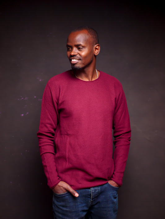 Knitted Long Sleeve Tshirt- Maroon