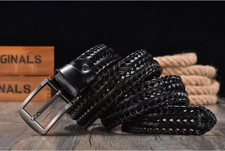 Black Woven Leather Belt